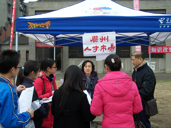 2007年12月31日上午10時,眉州人才市場與眉山職業(yè)技術(shù)學(xué)院聯(lián)合舉辦的“2008屆畢業(yè)生雙選會”隆重開幕,此次盛會是眉州人才市場與眉山職業(yè)技術(shù)學(xué)院為解決應(yīng)屆畢業(yè)生就業(yè)的重大舉措,推進(jìn)了該校畢業(yè)生就業(yè)工作,促進(jìn)畢業(yè)生充分就業(yè),為用人單位和畢業(yè)生提供一個雙向選擇的平臺,此次盛會有近150家招聘單位蒞臨招聘,2000余名求職者到會求職。