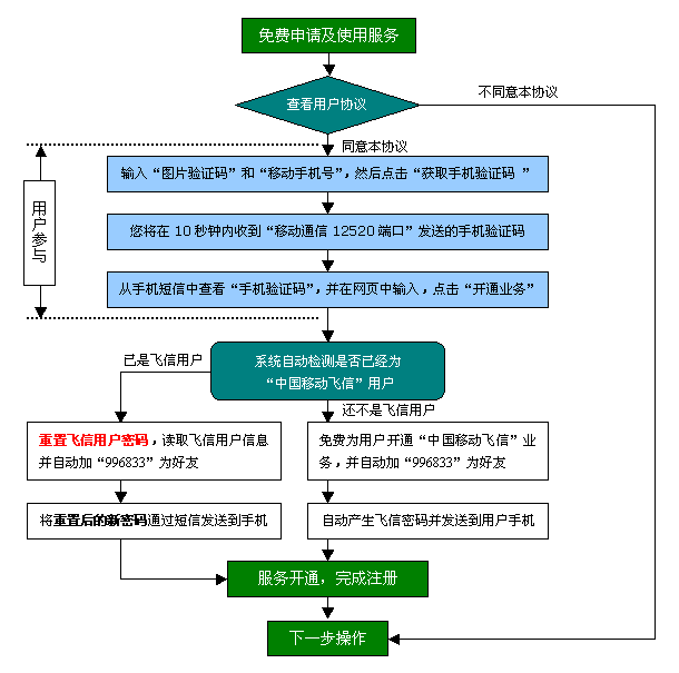 眉山人才網/洪雅人才網/彭山人才網/仁壽人才網/青神人才網/丹棱人才網/四川人才網/樂山人才網/眉山勞動力市場 “移動飛信求職招聘通”業(yè)務依托中國移動通信的“中國移動飛信”平臺,經中國移動通信提供移動飛信接口,由移動通信的第三方合作伙伴依據“飛信群”技術開發(fā)飛信短信發(fā)送接口(向用戶免費發(fā)送短信),人才服務機構提供短信數(shù)據(如招聘職位、招聘會信息等)來共同搭建。通過以上三方合作,為移動通信的手機用戶免費提供的求職招聘短信服務,方便客戶第一時間通過短信獲悉最新信息,此服務為社會化公益服務,不收取用戶任何費用。 一、服務開通流程