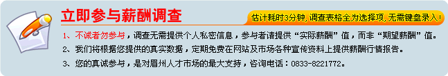 眉山本地薪酬調(diào)查,您的誠信參與,是對(duì)我們的最大支持!